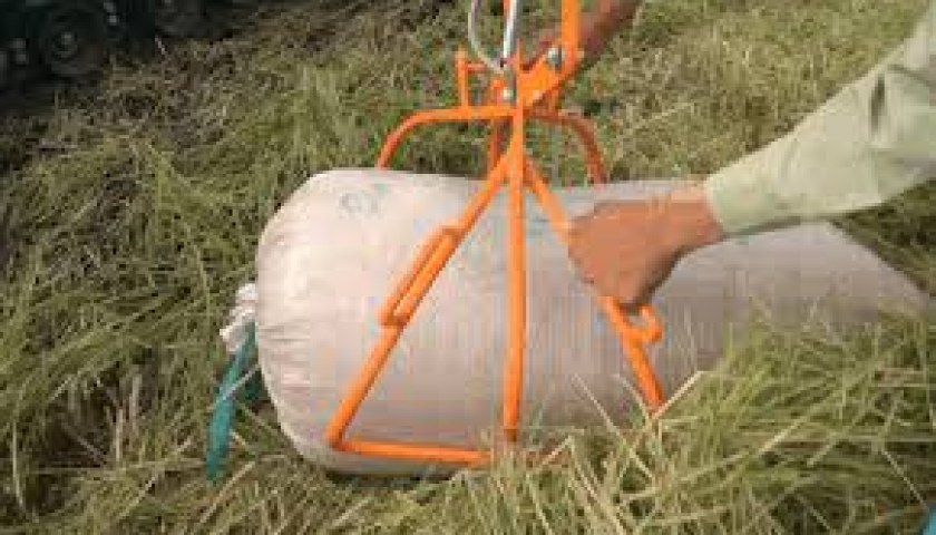 Thay vì cần 3-5 lao động đi khuân vác bao lúa theo sau máy kéo, giờ đây chỉ cần hai người thao tác nhờ "cánh tay gắp lúa" hỗ trợ.