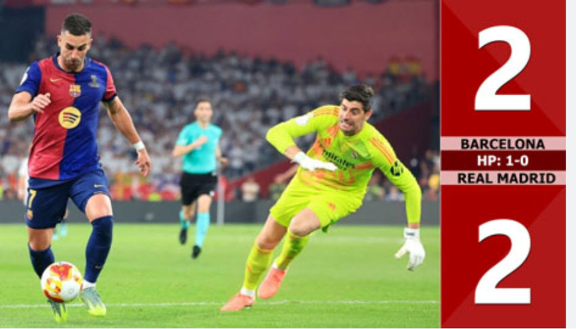 Kết quả bàn thắng Barcelona vs Real Madrid: 2-2, HP: 1-0 (Chung kết Cúp Nhà vua Tây Ban Nha 2024/20255)