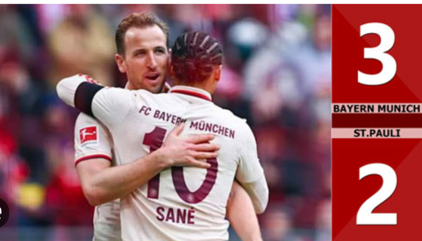 Kết quả bàn thắng Bayern Munich vs St. Pauli: 3-2 (Vòng 27 Bundesliga 2024/25)