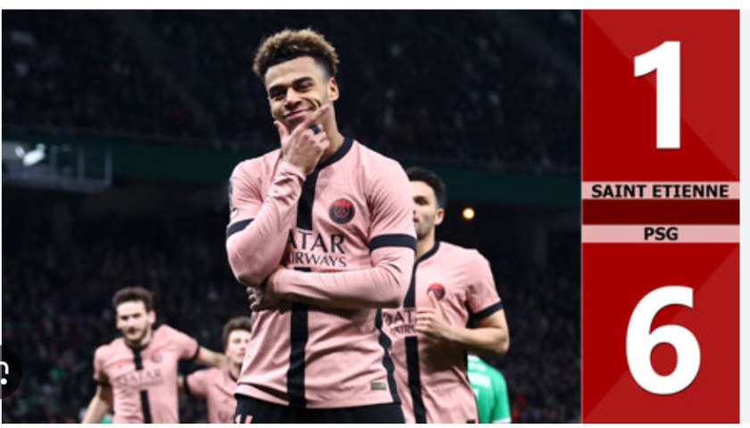 Kết quả bàn thắng Saint Etienne vs PSG: 1-6 (Vòng 27 Bundesliga 2024/25)