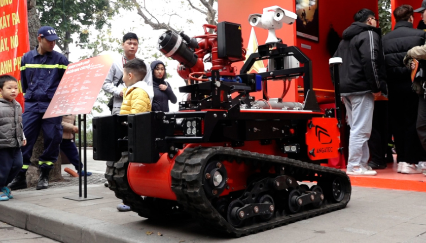 Robot chữa cháy tự leo cầu thang, phun nước của cảnh sát Việt Nam