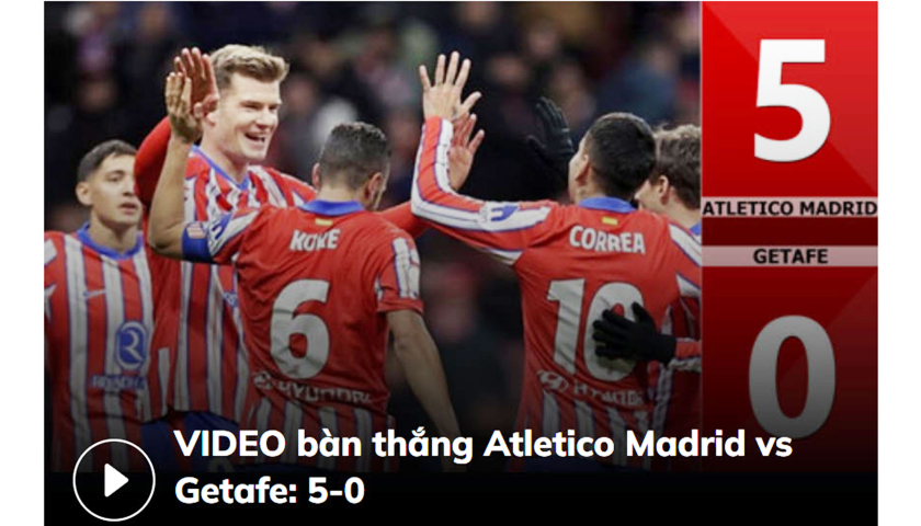 Bàn thắng Atletico Madrid vs Getafe: Với lợi thế sân nhà cùng đội hình chất lượng, Atletico Madrid đã "hủy diệt" Getafe với tỷ số đậm đà.