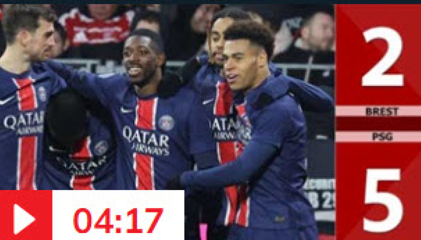 Kết quả bàn thắng Brest vs PSG: 2-5 (Vòng 20 Ligue 1 mùa giải 2024/25)