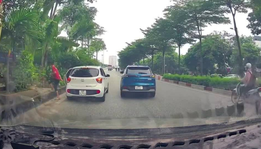 Hà Nội - Hai xe phải phanh gấp để tránh một chiếc xe khác dừng lại thả người giữa đường tại Võ Chí Công.