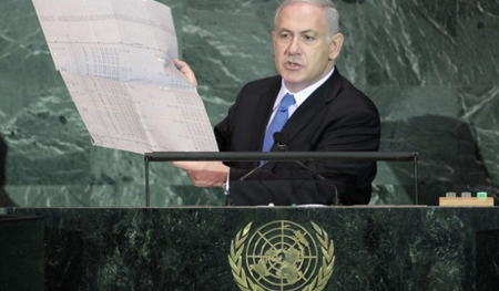 Thủ tướng Israel Benjamin Netanyahu ngày 1/10 tuyên bố trước cuộc họp Đại Hội đồng LHQ rằng nước ông sẵn sàng hành động "một mình" để ngăn chặn Iran sở...