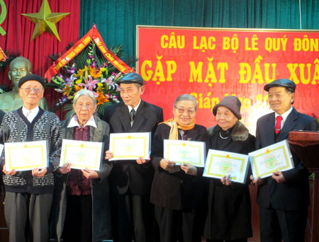 Sáng ngày 25/2, Câu lạc bộ (CLB) Lê Quý Ðôn tổ chức gặp mặt đầu năm để tổng kết hoạt động năm 2013, mừng thọ, chúc thọ cho các cụ cao niên và biểu dương...
