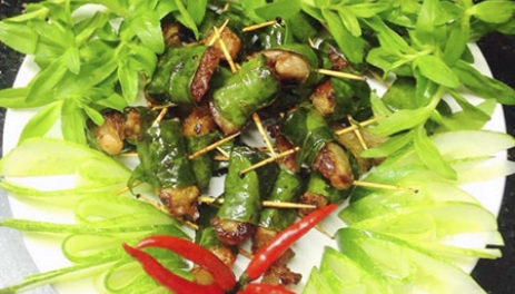 Thơm ngậy thịt ba chỉ cuộn lá móc mật chiên