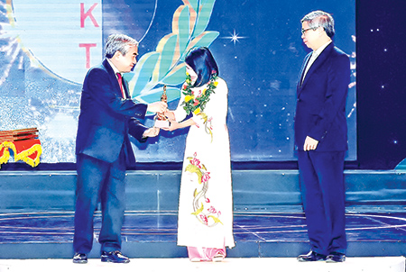 Ðạt giải nhất tại hội thi Sáng tạo kỹ thuật toàn quốc lần thứ XII (năm 2012 - 2013), cô giáo Mai Thị Bích Nguyện, Hiệu trưởng Trường THCS An Vũ (Quỳnh...