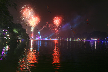 Lễ hội ánh sáng bên hồ Gươm bằng công nghệ laser đã mở màn cho “Đêm hồ Gươm lung linh” chào mừng 1000 năm Thăng Long - Hà Nội.