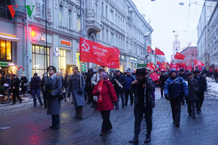 Suốt nhiều ngày qua và đỉnh điểm là đúng ngày 7/11, nhiều cuộc mít tinh, tuần hành của những người cộng sản Nga đã diễn ra ở khắp các tỉnh, thành phố.