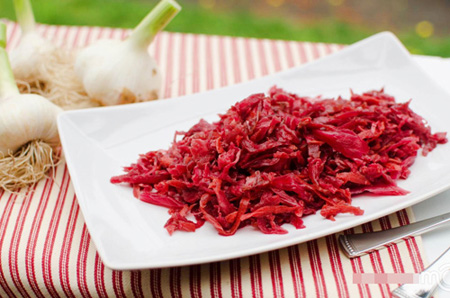 Để món bắp cải muối chua có màu sắc hấp dẫn chị em hãy muối cùng củ cải đường nhé.