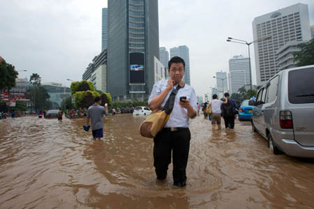 Cuộc sống của người dân tại thành phố Jakarta đảo lộn bởi trận lũ lớn nhất trong nhiều năm qua.