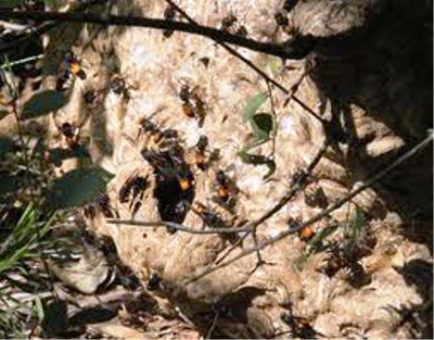 Một tổ ong vò vẽ khá lớn nằm ngay giữa khu dân cư đe dọa sự an toàn của hàng chục hộ dân
