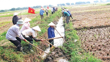 Để chủ động nguồn nước tưới, tiêu cho cây màu vụ đông, vừa qua, xã Điệp Nông (Hưng Hà) tổ chức ngày lao động xã hội chủ nghĩa làm thủy lợi nội đồng.