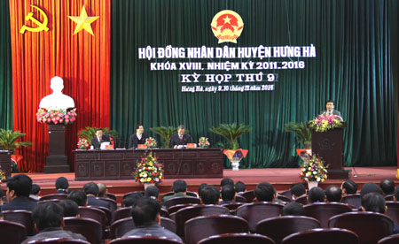 Sáng ngày 9/12, tại Trung tâm hội nghị huyện, Hội đồng nhân dân (HĐND) huyện Hưng Hà khóa XVIII, nhiệm kỳ 2011 – 2016 khai mạc trọng thể Kỳ họp thứ 9. Kỳ...
