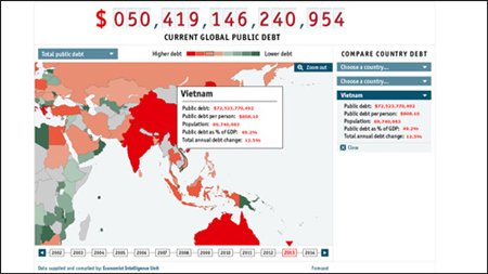 Theo Đồng hồ nợ công toàn cầu, nợ công của Việt Nam hiện đang chiếm 49,2% GDP toàn quốc.