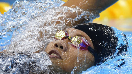 Kết thúc vòng loại 200m bơi ngửa nữ, kình ngư trẻ Nguyễn Thị Ánh Viên của Việt Nam đã về nhất ở lượt bơi thứ nhất với thời gian 2’13’’35.