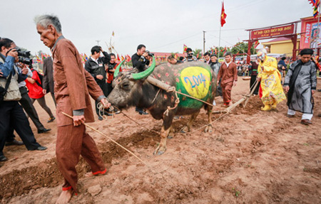 Lễ hội truyền thống xuống đồng cày ruộng, cầu cho một năm mưa thuận gió hòa, mùa màng bội thu diễn ra vào sáng nay (6/2).