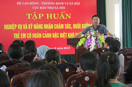 Lớp tập huấn nghiệp vụ và kỹ năng nhận chăm sóc, nuôi dưỡng trẻ em có hoàn cảnh đặc biệt khó khăn do Trung tâm Công tác xã hội và Bảo trợ xã hội (Sở Lao...
