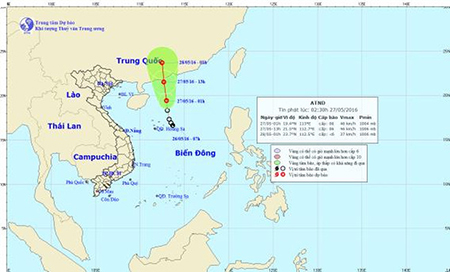Hồi 14 giờ ngày 27/5, vị trí tâm áp thấp nhiệt đới ở vào khoảng 21,3 độ vĩ Bắc; 112,6 độ kinh Đông, trên vùng biển phía Tây Nam tỉnh Quảng Đông (Trung...