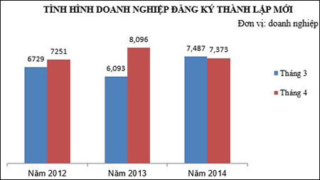 So với cùng kỳ năm 2013 thì số doanh nghiệp đăng ký thành lập mới tăng 8,1% và số vốn đăng ký tăng 16,2%.