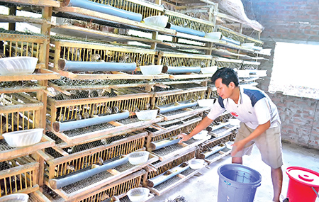 18 năm làm thợ mộc nhưng sau 2 năm làm thêm nghề tay trái là nuôi chim cút lấy trứng, anh Đào Đức Thưởng, đoàn viên thanh niên thôn Dũng Tiến, xã Quỳnh Xá...