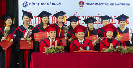 Viện Đại học Mở Hà Nội - Trung tâm Giới thiệu việc làm Thái Bình Trao bằng tốt nghiệp ngành Kế toán cho 98 tân cử nhân