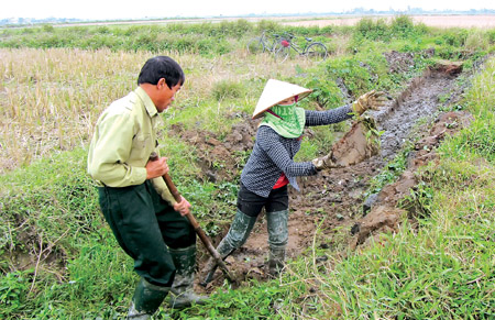 Ðể chuẩn bị cho sản xuất vụ xuân năm 2015, xã Quỳnh Minh (Quỳnh Phụ) đang đẩy nhanh tiến độ làm thủy lợi đông xuân.