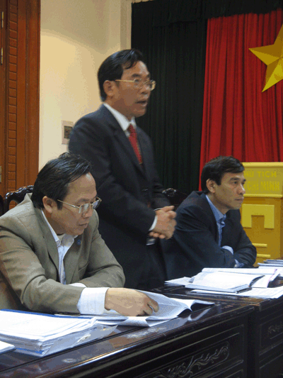 Đồng chí Huỳnh Đảm, Chủ tịch UBT.Ư MTTQVN kiểm tra công tác tổ chức, chỉ đạo, thực hiện cuộc vận động lớn ở Thái Bình