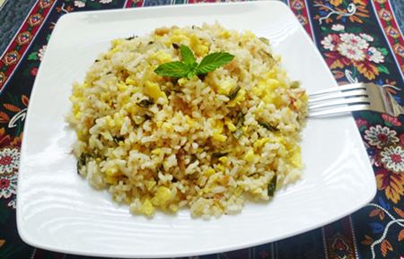 Vị đậm đà và mùi thơm đặc trưng của cá mặn, vị chua chua của dưa cải muối sẽ làm cho món cơm rang quen thuộc trở nên lạ miệng hấp dẫn.