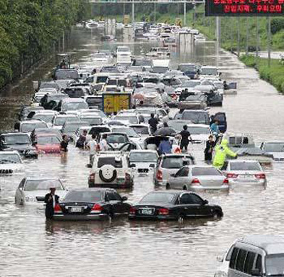 Theo Tân Hoa xã và Roi-tơ, ngày 28-7, mưa lớn tiếp tục gây ngập lụt và lở đất nghiêm trọng tại Hàn Quốc. Các vụ lở đất từ đêm 27-7 đã làm ít nhất 44 người...