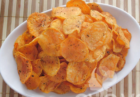Thưởng thức bim bim khoai lang tự làm vừa ngon vừa giòn thế này ai chẳng thích.