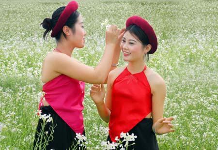 Cuối đông, hoa cải nở rộ. Đây là nguồn cảm xúc vô tận đối với nhà nhiếp ảnh. Một thoáng yếm thắm, ánh mắt long lanh, nồng nàn hương hoa cải...