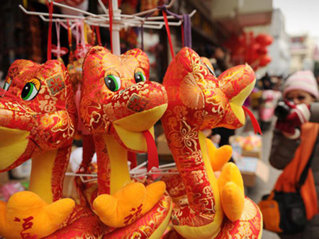 Tại nhiều nước châu Á, không khí Tết con rắn (Quý Tỵ) 2013 đang ngập tràn, người dân háo hức chuẩn bị cho một năm mới đang đến gần, các con phố...