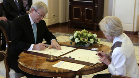 Sáng 27/6, tại thủ đô Canberra, ông Kevin Rudd đã tuyên thệ nhậm chức Thủ tướng Australia trước sự chứng kiến của Toàn quyền Australia Quentin Bryce. Toàn...