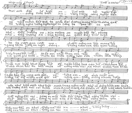 “Nơi anh đến là biển xa, nơi anh tới ngoài đảo xa/ Từ mảnh đất quê ta giữa đại dương mang tình thương quê nhà/ Đây Trường Sa, kia Hoàng Sa/ Ngàn bão tố...