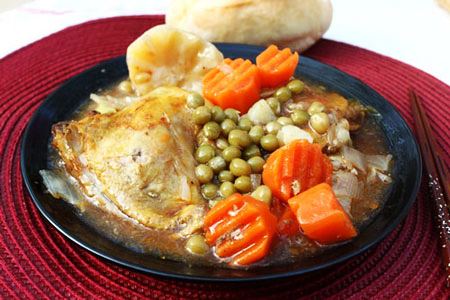 Vị ngọt tự nhiên của thịt gà được nấu với cà rốt, khoai tây và đậu Hà Lan ăn bùi bùi, ăn kèm với bánh mỳ hay cơm đều ngon.
