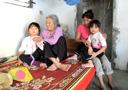 Men theo con đường nhỏ, chúng tôi tìm đến xóm nghèo nằm giữa cánh đồng nơi có bốn con người với cuộc sống vô cùng khó khăn. Đó là gia đình bà...