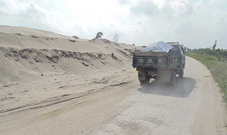 Trọng Quan: Ô nhiễm môi trường từ bến bãi tập kết cát, đá ven đê sông Trà Lý