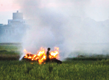 Người dân đốt rơm, rạ sau thu hoạch không chỉ gây ô nhiễm môi trường mà còn ảnh hưởng đến an toàn giao thông.