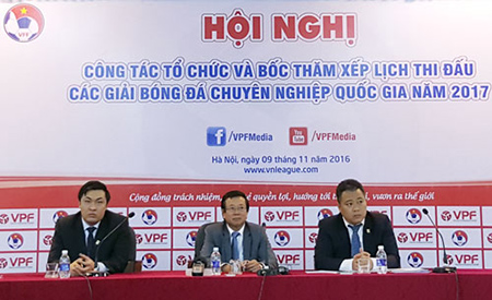 Trong khuôn khổ Hội nghị công tác tổ chức và bốc thăm xếp lịch thi đấu các giải bóng đá chuyên nghiệp quốc gia năm 2017 tổ chức ngày 9/11 tại Hà Nội,...