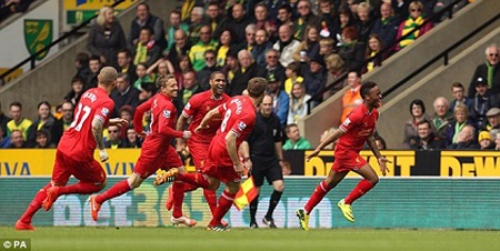 Lập cú đúp trong trận gặp Norwich, ngôi sao trẻ Sterling một lần nữa góp công lớn giúp Liverpool giành trọn 3 điểm để xây chắc ngôi đầu Premier...