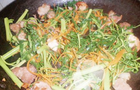 Thơm ngon với rau rút xào tôm thịt