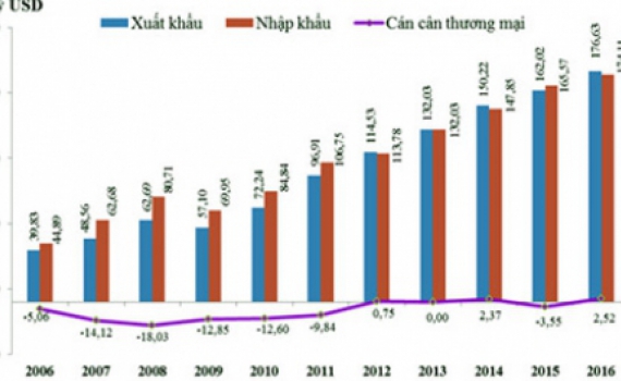 Thặng dư thương mại của cả năm 2016 đạt hơn 2,52 tỷ USD, mức cao nhất trong vòng 11 năm trở lại đây.