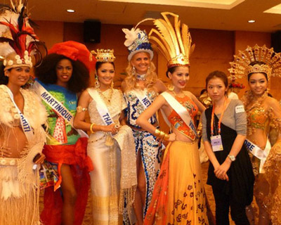 Đại diện Việt Nam và các người đẹp dự thi Hoa hậu Quốc tế tại Thành Đô, Trung Quốc đã diện những bộ trang phục dân tộc rất cầu kỳ, đẹp mắt dự buổi gặp gỡ...