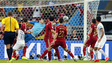 Loạt trận thứ 2 vòng bảng bảng B, Tây Ban Nha đối đầu Chile, đương kim vô địch thế giới đã thua với tỉ số 0-2, sớm rời World Cup 2014, trở thành cựu vô...