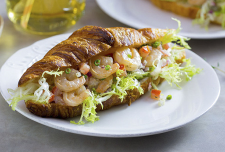 Bánh mì kẹp salad tôm vô cùng ngon miệng bởi sự kết hợp hoàn hảo giữa vỏ bánh mềm thơm mùi bơ với phần nhân tôm salad tươi ngọt.