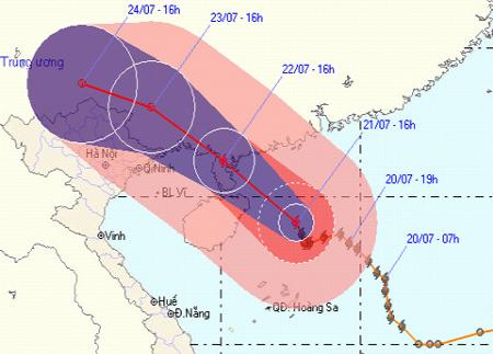 Theo tin của Trung tâm Dự báo Khí tượng Thủy văn Trung ương: Hồi 07 giờ ngày 23 /7/2012, vị trí tâm bão số 4 ở vào khoảng 19,4 độ Vĩ Bắc, 114,5 độ Kinh...