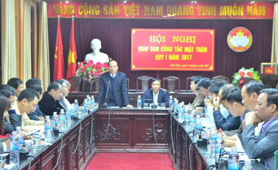 Hội nghị giao ban công tác mặt trận quý I năm 2017 được Ban Thường trực Ủy ban MTTQ tỉnh tổ chức chiều ngày 17/3 tại Thành ủy Thái Bình.