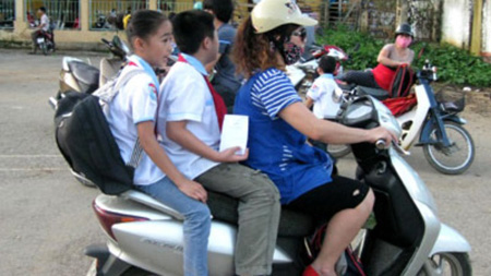 Bắt đầu từ hôm nay, nếu các bậc phụ huynh chở con đi xe máy mà không đội mũ bảo hiểm sẽ bị phạt tương đương với lỗi của người lớn.